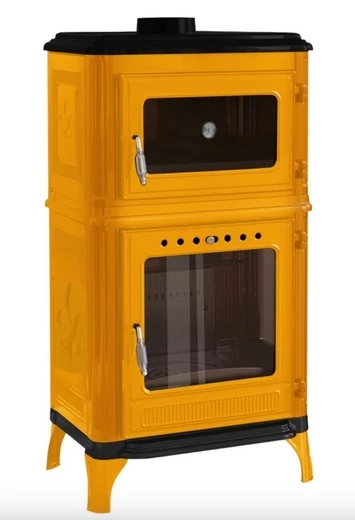 HUNOR 8010 öntvény sütős kandalló sárga színű külső burkolattal, 7,1 kW